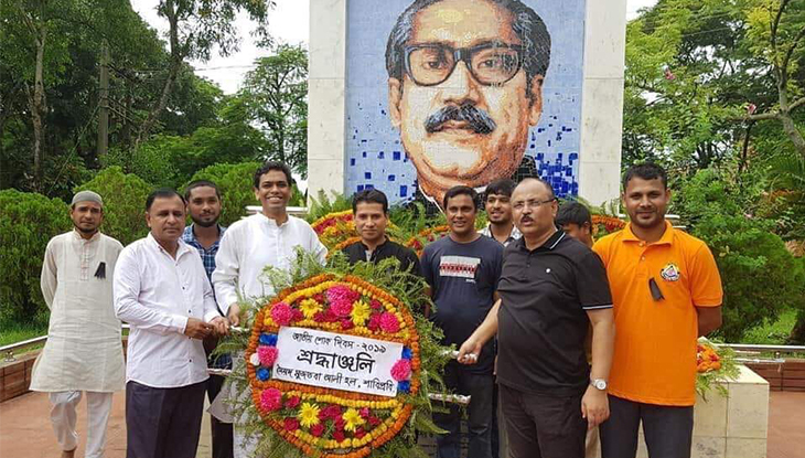 গত ১৫ আগস্ট বিশ্ববিদ্যালয়ের গোলচত্বরে স্থাপিত বঙ্গবন্ধুর প্রতিকৃতিতে পুষ্পস্তবক অর্পণ করে বিশ্ববিদ্যালয় প্রশাসন, বিভিন্ন বিভাগ, শিক্ষক, কর্মকর্তা, কর্মচারী, রাজনৈতিক, সাংস্কৃতিক ও স্বেচ্ছাসেবী সংগঠনের নেতাকর্মীরা।