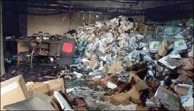 আগুনে ক্ষয়ক্ষতির পরিমাণ উল্লেখ করতে গিয়ে ইসির এই অতিরিক্ত সচিব বলেন, ‘আমি আজকে ভেতরে গিয়ে দেখলাম, সেখানে অল্প ক্ষতি হয়েছে। ভেতরে কয়েকটি এসি আছে, সেগুলো ক্ষতিগ্রস্ত হয়েছে। এসির লাইন, বিদ্যুতের ওয়ারিংগুলো ক্ষতিগ্রস্ত হয়েছে। ইভিএম, বিশেষ করে ব্যালট ইউনিট, মনিটর–এগুলো বেশি ক্ষতিগ্রস্ত হয়েছে। তবে কন্ট্রোল ইউনিট যেটা বেশি মূল্যবান সেগুলো পাশের কক্ষে ছিল, সেগুলোর ক্ষতি হয়নি।’