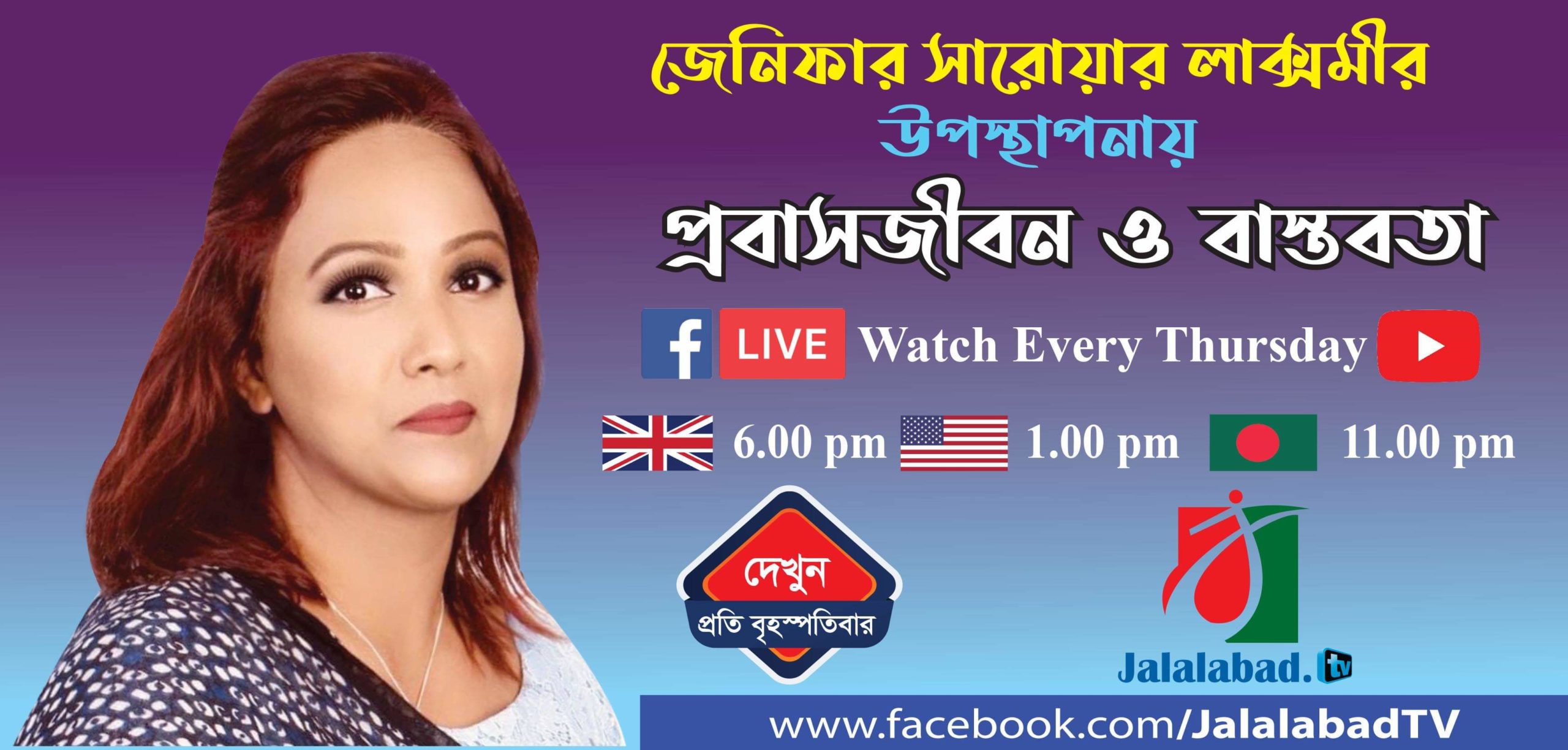 প্রবাসীদের দৈনন্দিন জীবনের সুখ-দুঃখের কথা নিয়ে জেনিফার সারোয়ার লাক্সমীর উপস্থাপনায় জালালাবাদ টিভিতে প্রচারিত হবে প্রবাসজীবন ও বাস্তবতা।