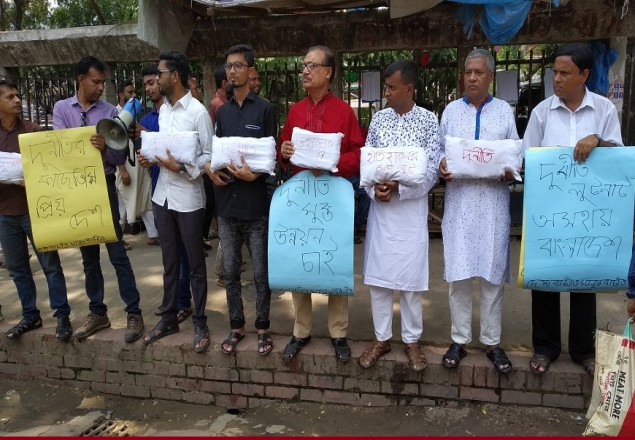 সংগঠনটির সভাপতি কে এম রকিবুল ইসলাম রিপন বলেন, “রূপপুর পারমাণবিক প্রকল্পে লুটপাটের যে মহাউৎসব চলছে তার প্রতিবাদে আজ দ্বিতীয় দিনের মতো বিক্ষোভ করছি। আমরা মনে করি বাংলাদেশ একটা মগেরমুলুক রাজত্বে পরিণত হয়েছে। তার প্রমাণ রূপপুর পারমাণবিক প্রকল্পে লুটপাট। শাসক দলের নেতৃবৃন্দরা এই দুর্নীতির সঙ্গে জড়িত। দেশের গণমাধ্যমগুলোতে যখন এই দুর্নীতি প্রকাশ করছে এরপরও এই সরকারের টনক নড়ছে না কেন?”