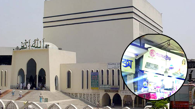 জাতীয় মসজিদের পিলার ও দেয়াল ভেঙ্গে আ’লীগ নেতার দোকান!